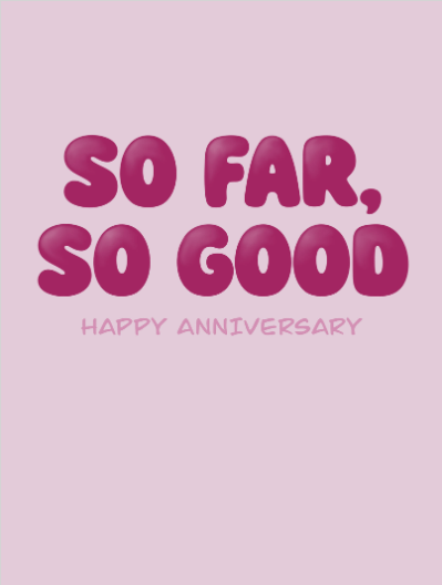 Witty 'So Far, So Good' Anniversary Card