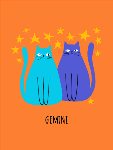 Personalised Gemini Cat Birthday Card