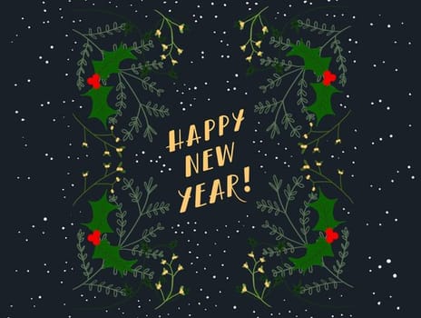 Golden Holly New Year Greeting Card