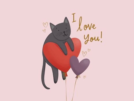 Grey Cat Love Balloon Card