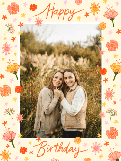 Brighten their day with floral birthday cards that are as beautiful as a bouquet. Choose from elegant or colourful flower designs, then add your own message and photo for a greeting full of charm.