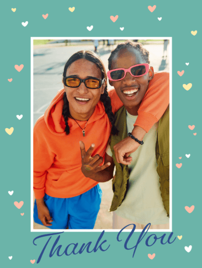 Heartfelt Teal Thank You Photo Card