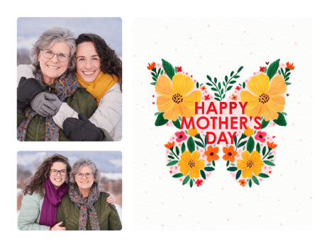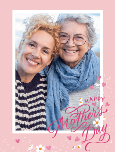Browse our range of designs, layouts and stickers to design the perfect Mother's Day card for your mum. Then pick your favourite picture of you together to create the perfect Mother's Day card that she will cherish. For the smoothest experience, download our app.