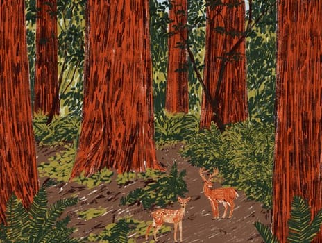 Redwood Forest Deer Birthday Card