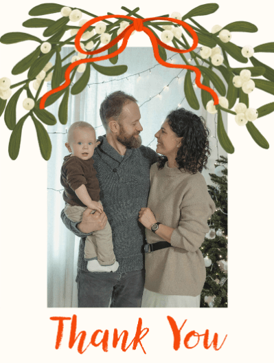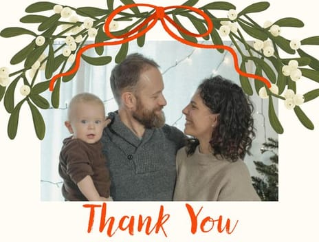 Thank You Card with Mistletoe & Ribbon