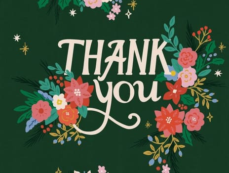 Green Floral Thank You Card