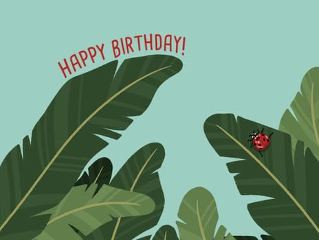 Happy Birthday! Tropical Leaves & Ladybug