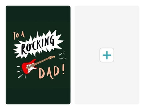 Celebrate your amazing dad with this lively, rock-and-roll t... hemed greeting card. Its striking dark green background, bold 'TO A ROCKING DAD!' text, and vibrant red electric guitar make it perfect for Father's Day or any day you want to show appreciation. Easily personalize it with a cherished photo to create a unique, heartfelt card he'll love. Available as a postcard and greeting card, this card is blank inside so you can personalize it with a message of your own. All our cards are printed with premium paper with a glossy finish.