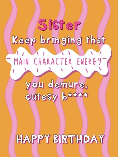Sassy Sister Birthday Card: Main Character Energy
