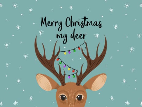 Festive Deer & Snowflake Christmas Card